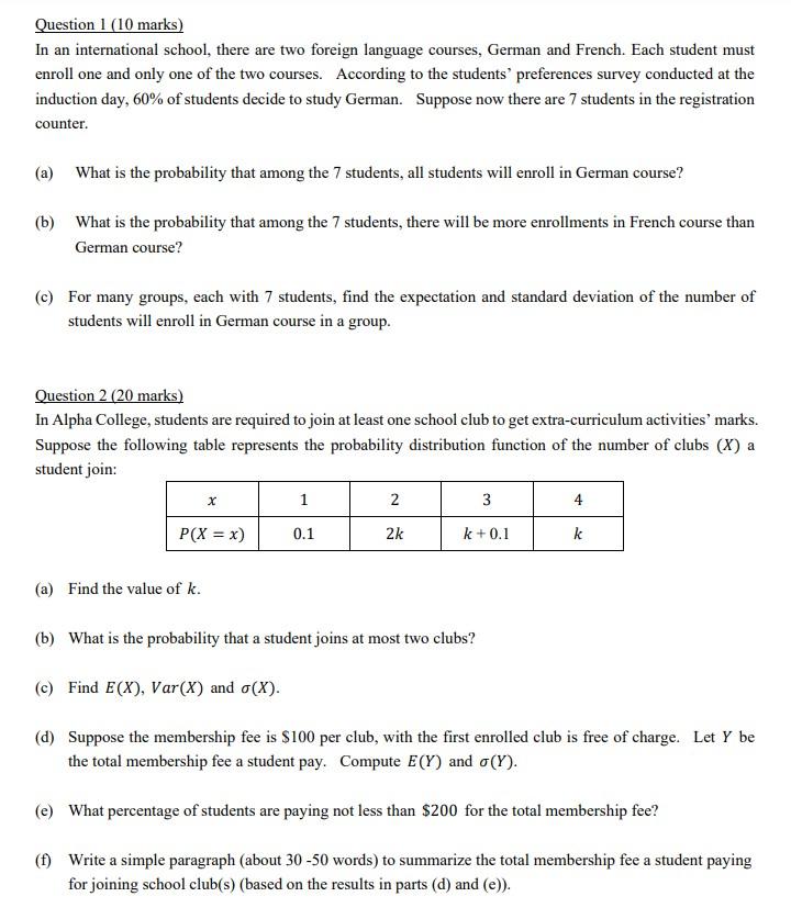 Solved Question 1 10 Marks In An International School Chegg Com